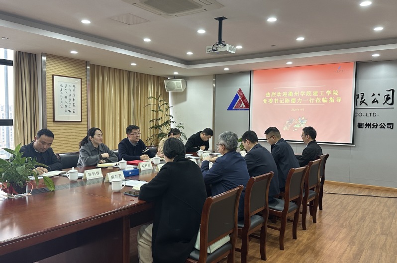凌云建设集团有限公司董事长姚志云热情接待了建工学院一行,他介绍了凌云集团组织架构、管理模式和发展成果,他表示凌云集团将充分发挥企业自身优势资源,深化双方的合作,务实推进各项合作项目,实现双方共建共赢。陈德力书记对凌云集团的支持表示感谢,他介绍了学院基本情况和近年来在党建联建、专业建设、学科发展等方面取得的成效,希望双方发挥党建引领作用,在实习就业、人才培养、科技攻关等方面进行全方位深度合作,为企业提供技术支持和人才支撑。
